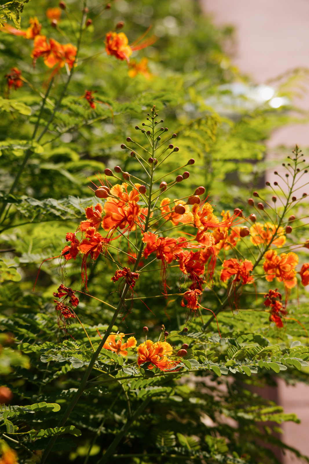洋金鳳花朵一簇簇呈艷麗的黃、橙色,生氣勃勃。花瓣上微細的皺褶,看起來像羽毛,加上花朵上精巧複雜的圖案使它看來更像孔雀華麗的尾巴。這種植物因其花朵顏色對比鮮明、引人注目,而被廣泛栽種作為觀賞植物。