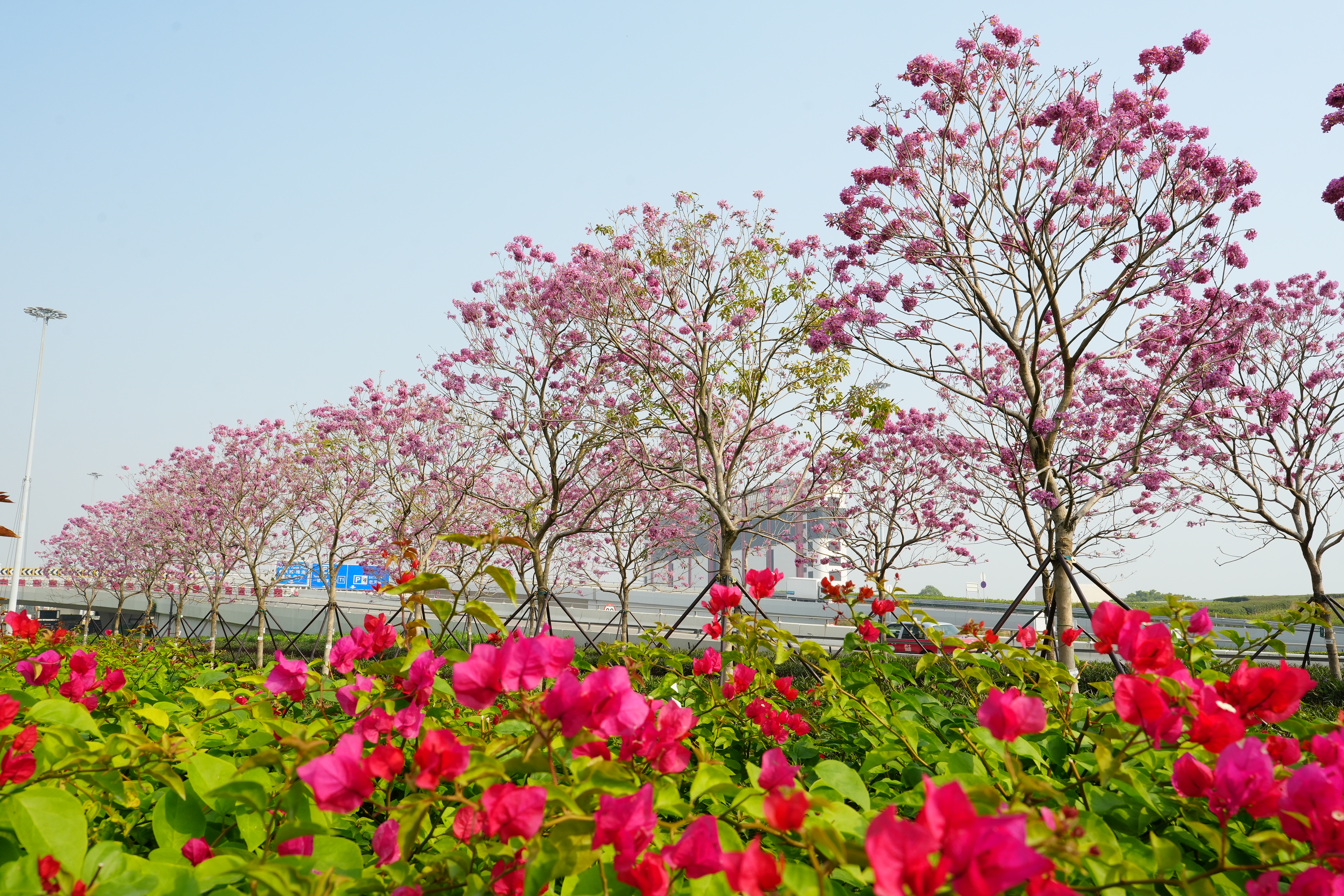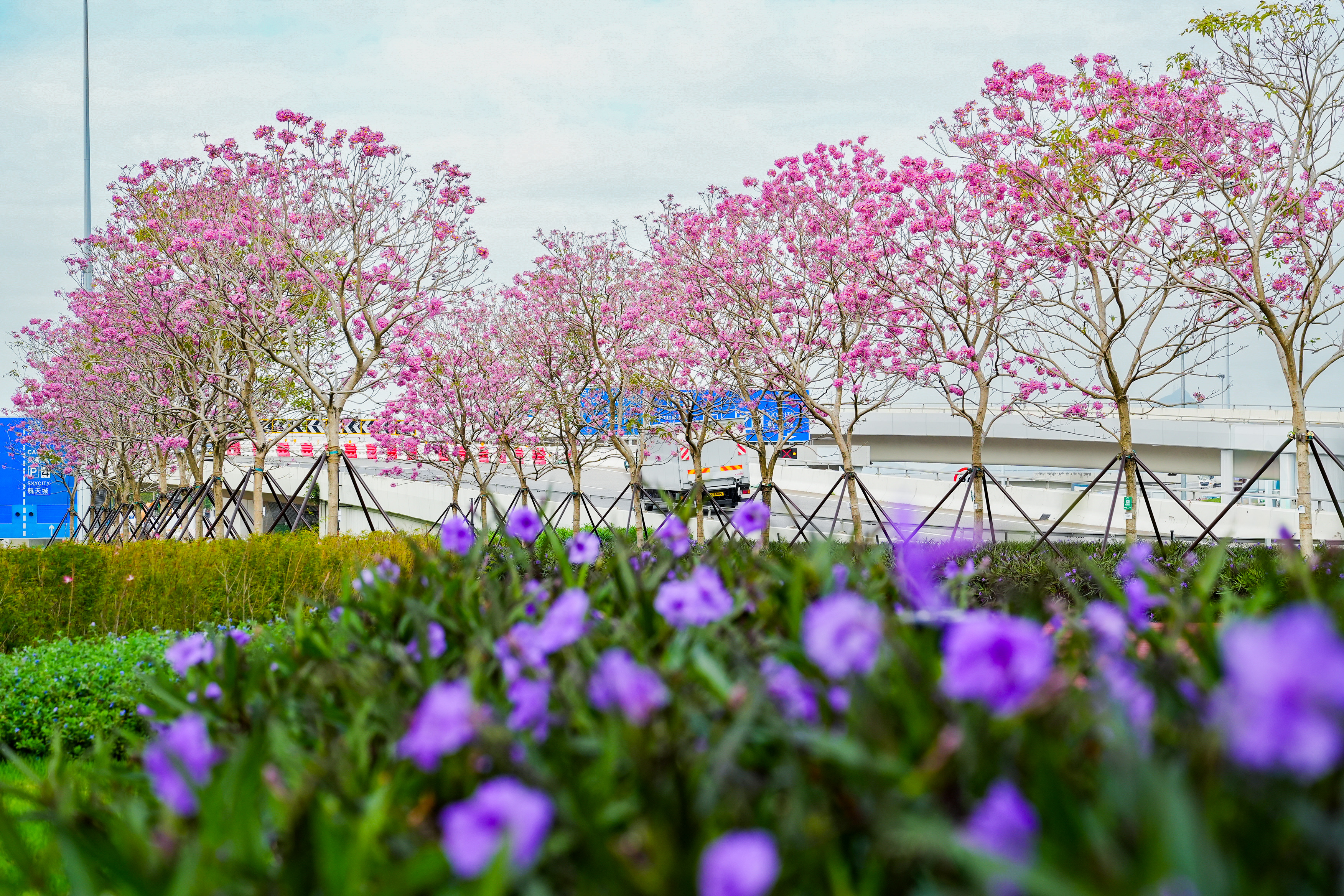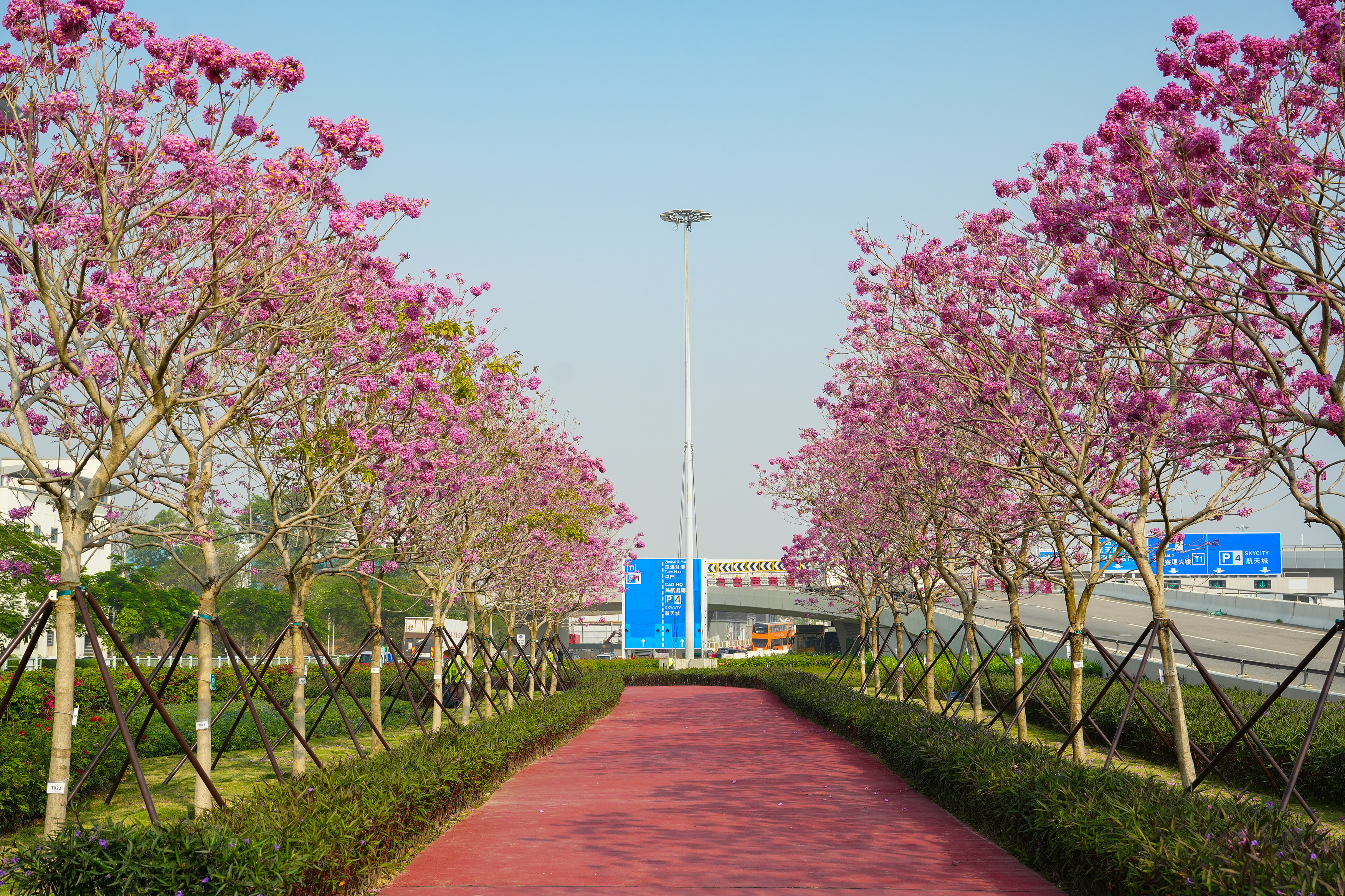 沿機場的紫花風鈴徑種植了逾50棵紫花風鈴木,呈現一片夢幻迷人的紫色樹冠,花朵在清爽的冬日和風中優雅舞動。這片如畫景致被綠意盎然的步道環繞,供大眾漫步其中,盡情欣賞自然之美。